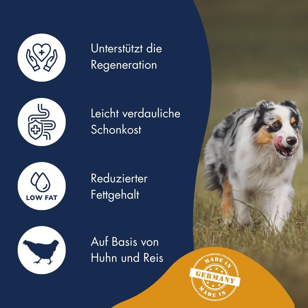 - Leicht verdauliche Schonkost für empfindliche Hunde