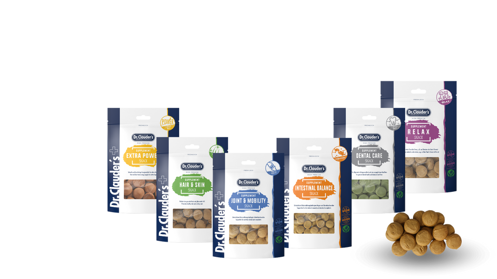 Vorsorge ist besser als Nachsorge – auch bei unseren Tieren. Nahrungsergänzung unterstützt die Gesundheit von Hund & Katze ab dem 3. Monat, gleicht Futterlücken aus und hilft bei rasse- oder altersbedingten Bedürfnissen. Mit Dr.Clauder´s Function & Care findest du passende Unterstützung in fünf Bereichen: Mobil & Fit, Hair & Skin, Intestinal, Dental und Pro Life.