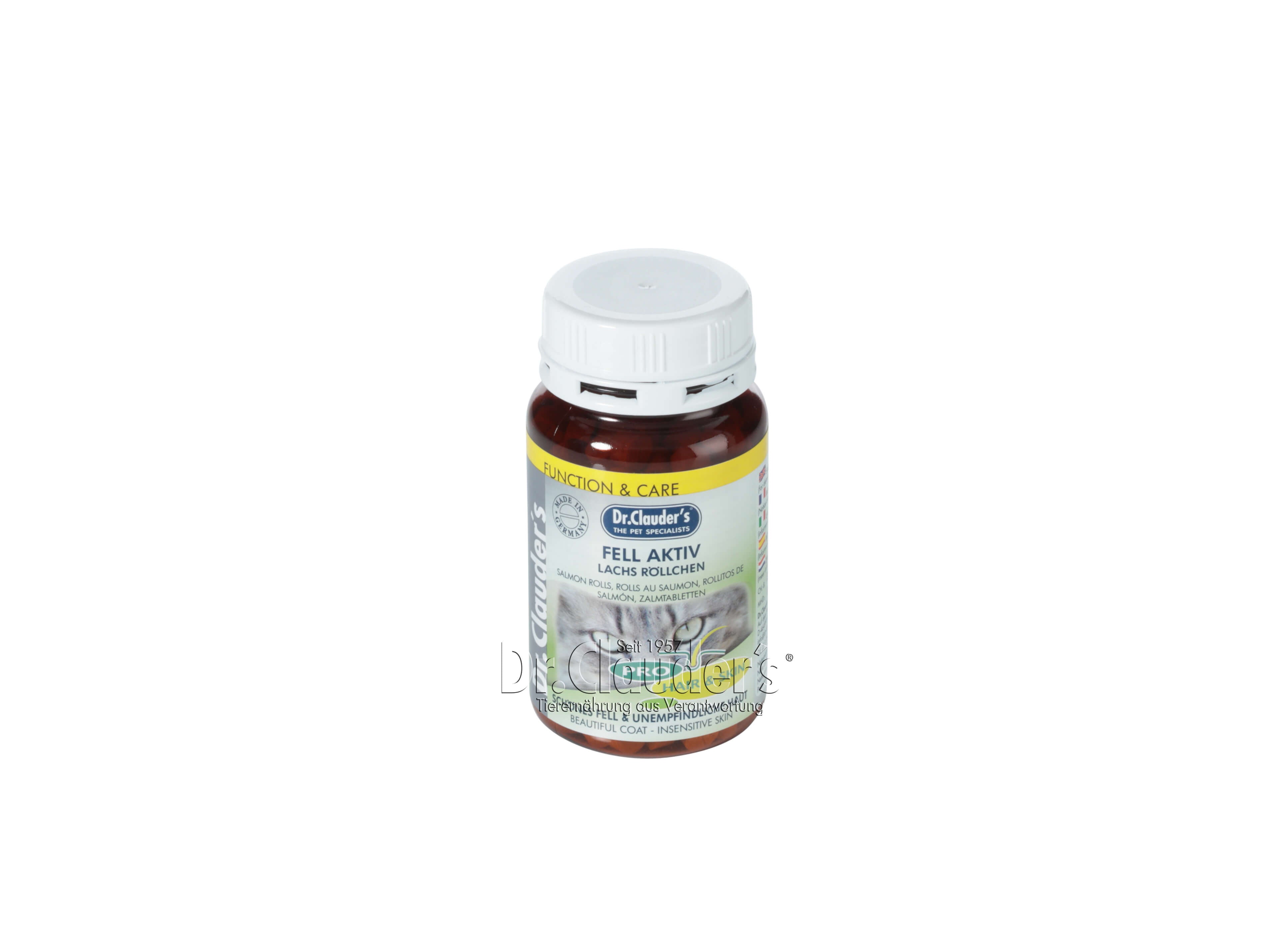 Dünnes, stumpfes Fell, empfindliche, strapazierte Haut. Das sind Probleme, die immer mehr Katzen das Leben erschweren. Schutz des Körpers und Schönheit sind gleichermaßen beeinträchtigt. Fell Aktiv Lachs-Röllchen leisten einen großen Beitrag zu schönem Fell und unanfälliger Haut. Die im verwendeten Lachs enthaltenen natürlichem Omega-3-Fettsäuren und die in der Hefe enthaltene natürliche, große Menge an B-Vitaminen, sind klassische Förderer eines dichten und glänzenden Fells. Dr.Clauder´s Fell Aktiv Lachs Röllchen: - Glänzendes, schönes Fell - Dichte Unterwolle - Unempfindliche Haut - Erhaltung des Körperschutzes durch Fell und Haut - Mit natürlichem Vitamin-B-Komplex - Mit Lachs.