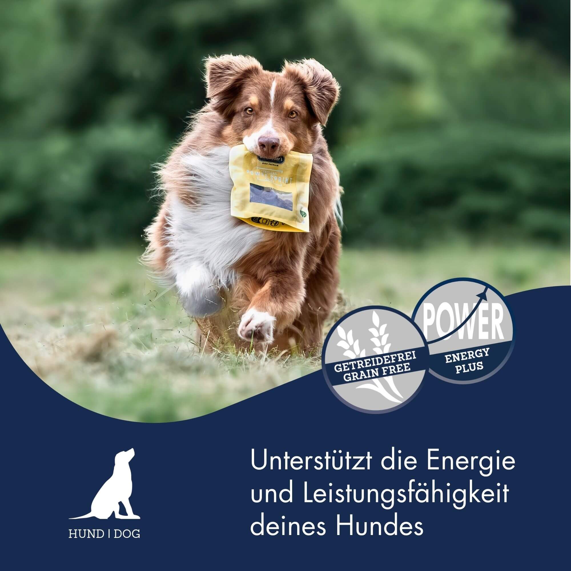 At the heart of this recipe is a protein-rich turkey base, enriched with sunflower protein. Potassium gluconate is another key ingredient that plays a vital role in energy metabolism. Potassium is essential for converting carbohydrates into energy, which is especially important for active and athletic dogs. Combined with yeast, which provides a wealth of natural vitamins and can promote overall well-being, this combination aims to optimize energy delivery. The essential amino acid lysine can not only support the healthy growth and repair of muscle tissue, but also plays an important role in calcium absorption and collagen production. Vitamin E and selenium, two antioxidant components, contribute to increased performance and protect cells from oxidative stress, which is especially important during strenuous physical activity. Thanks to this carefully selected combination, our Power Sprint Coin provides enough energy your dog needs for daily adventures.
