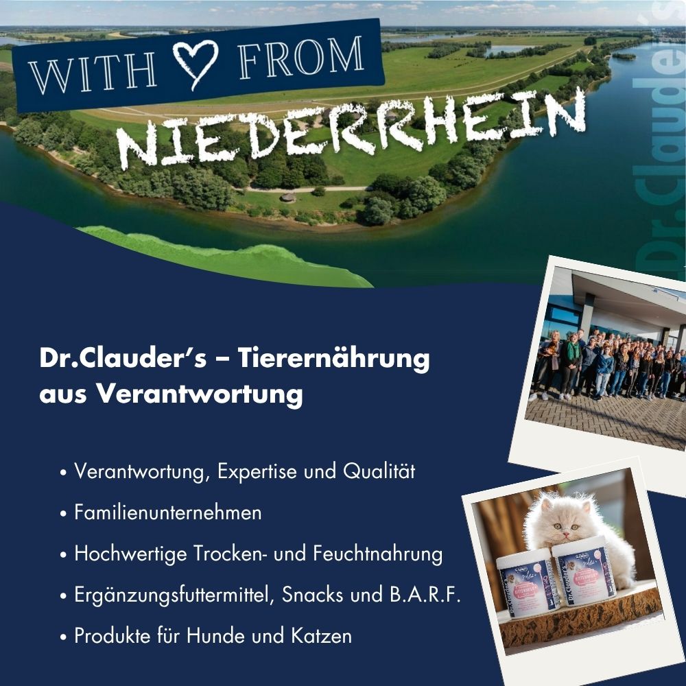 Dr. Clauder's Taste Guarantee offers you a risk-free pet food purchase decision. If your pet doesn't like a Dr. Clauder's product, you can select a suitable alternative via the website, which we will send to you free of charge. (Large containers of 10-20 kg are excluded.)