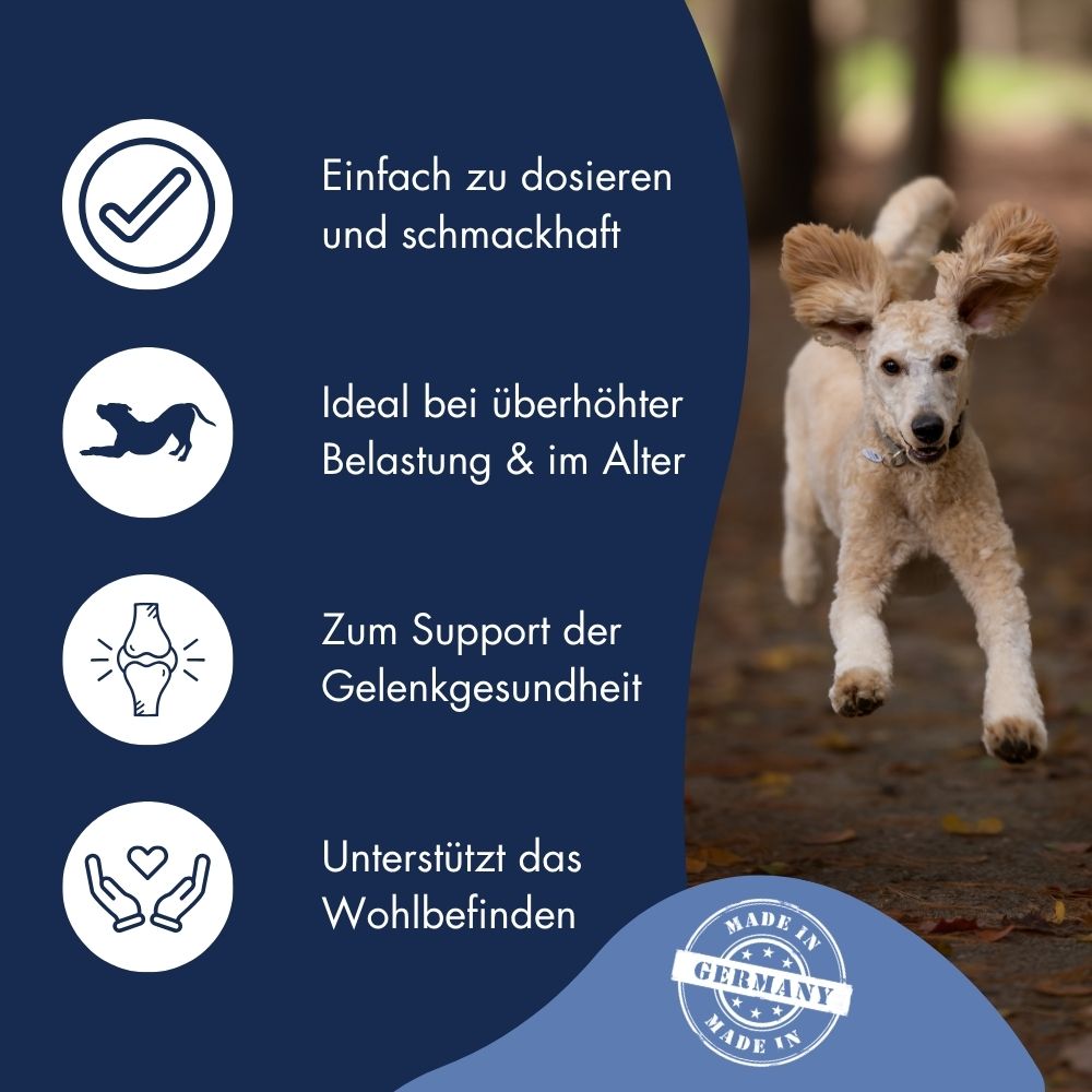 • Gezielte Unterstützung für Gelenke, Knorpel und Bindegewebe bei Hund und Katze