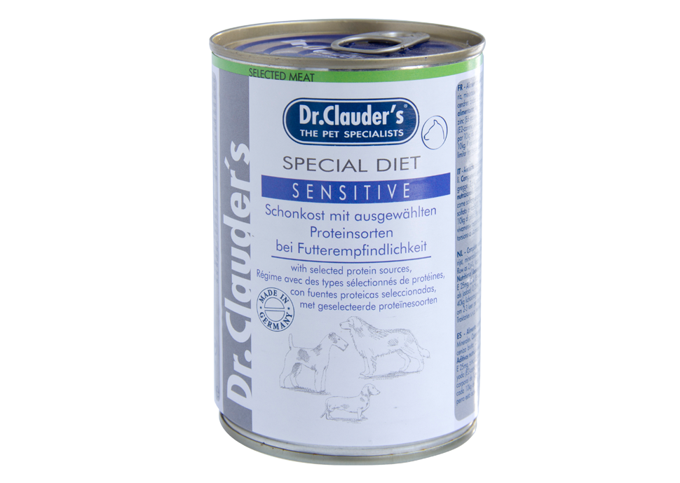 Verwöhnen Sie Ihren empfindlichen Hund mit Dr.Clauder´s Selected Meat Special Diet Sensitive 400g! Diese Schonkost ist speziell für Hunde mit Empfindlichkeiten gegenüber bestimmten Futtermittelrohstoffen entwickelt worden. Anders als bei der üblichen Vollnahrung enthält diese Schonkost nur eine Quelle für tierisches und pflanzliches Eiweiß – Lamm und Reis – die sich bei Futterempfindlichkeiten bewährt haben. Auf die Zugabe von Schwein, Rind und Weizen wurde bewusst verzichtet. Bei akuten Problemen sollten Sie jedoch immer einen Tierarzt konsultieren.