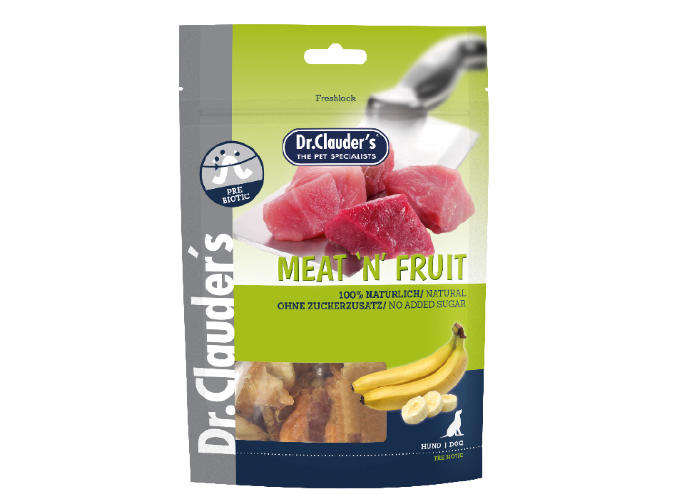 Meat'n'Fruit Banane vereint delikates Hühnchenfleisch und schmackhafte Banane zu einem einzigartigen Snack für Hunde. Ohne Zuckerzusatz. Mit FOS zur Unterstützung einer gesunden Darmflora.