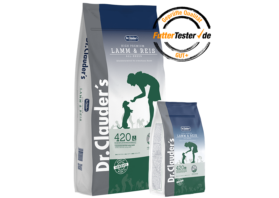 High Premium Lamm & Reis ist frei von Weizen und Konservierungsmitteln. 1 kg dieses Trockenfutters entspricht dem Nährwert von 420 g Frischfleisch. Diese Vollnahrung bietet eine ausgewogene Ernährung für jeden Tag.