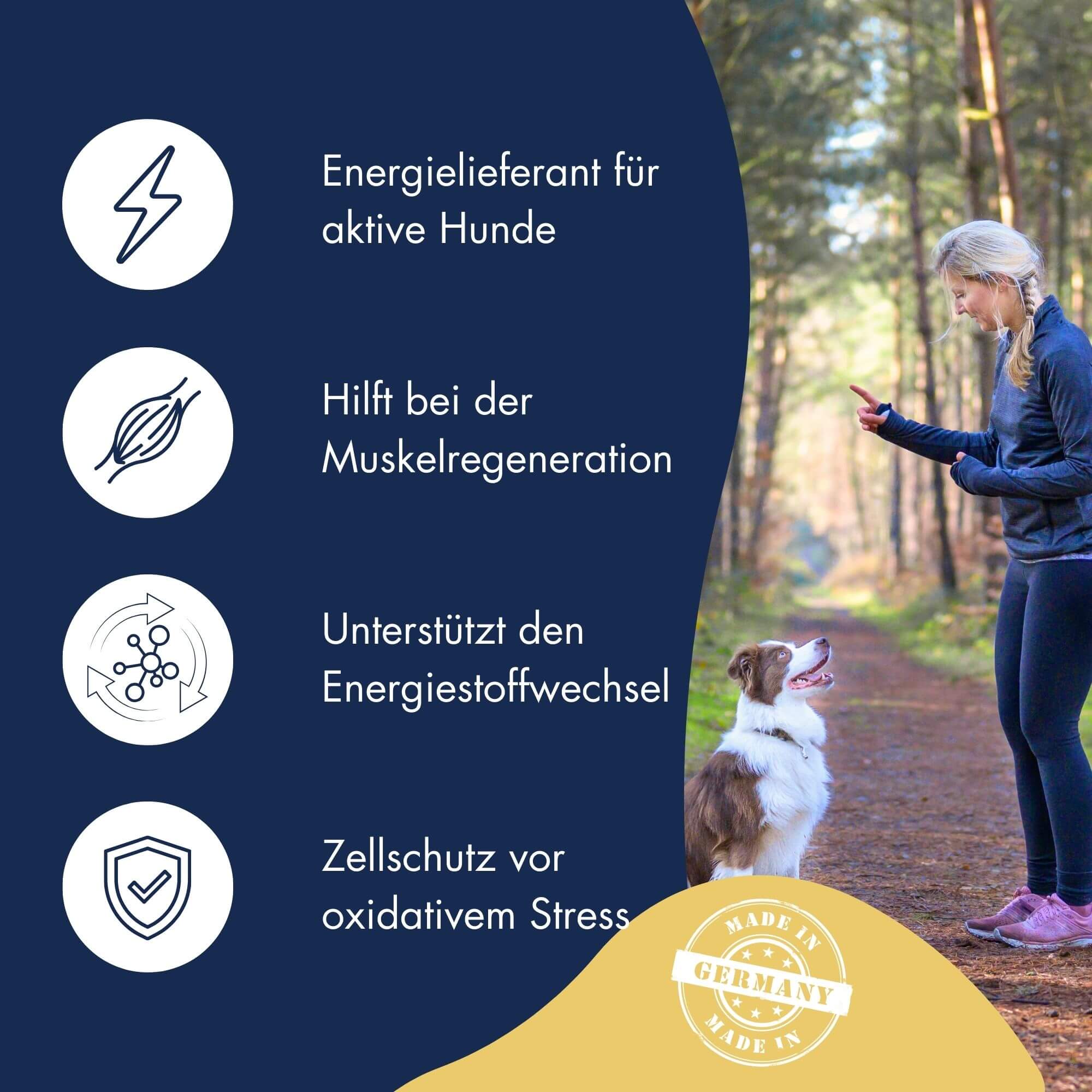 - Liefert Energie für aktive Hunde und unterstützt den Energiestoffwechsel
