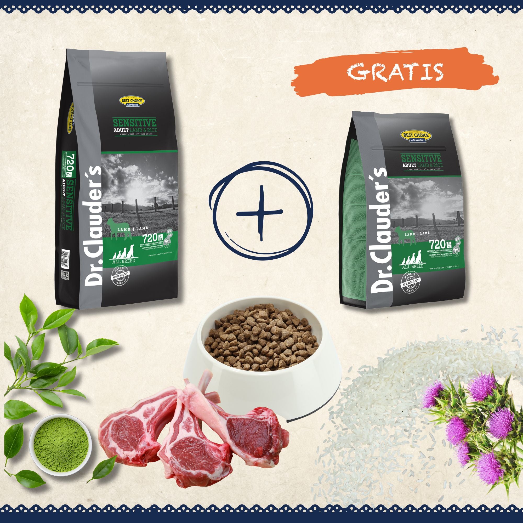 Dr.Clauder’s Geschmacksgarantie bietet Dir eine risikofreie Kaufentscheidung für die Tiernahrung. Wenn Deinem Tier ein Dr.Clauder’s Produkt nicht schmeckt, kannst Du über die Webseite eine passende Alternative auswählen, die wir Dir kostenfrei zusenden. (Großgebinde von 10-20 kg sind ausgenommen).