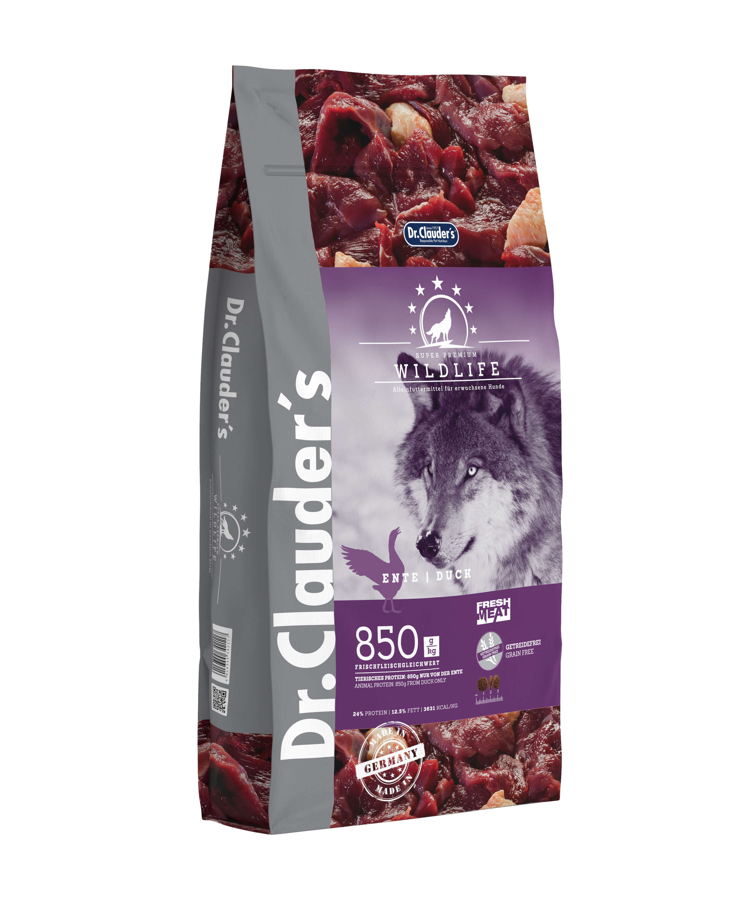 Zusammensetzung: Kartoffelmehl, Entenfleisch 25%, Entenprotein (getrocknet) 20%, Rübentrockenschnitzel, Apfel (getrocknet), Erbsen (getrocknet), Leinsamen, vegetarisches Eiweißhydrolysat, Dicalciumphosphat, Geflügelfett, Preiselbeeren (getrocknet), Blaubeeren (getrocknet), Hefe-Beta Glucane, Yucca-Schidigera-Pulver, Brennessel (getrocknet), Brombeerblätter (getrocknet), Schafgarbenkraut (getrocknet), Fenchel (getrocknet), Kümmel (getrocknet), Kamillenblüten (getrocknet), Mistelkraut (getrocknet), Enzianwurzel (getrocknet), Tausendgüldenkraut (getrocknet).